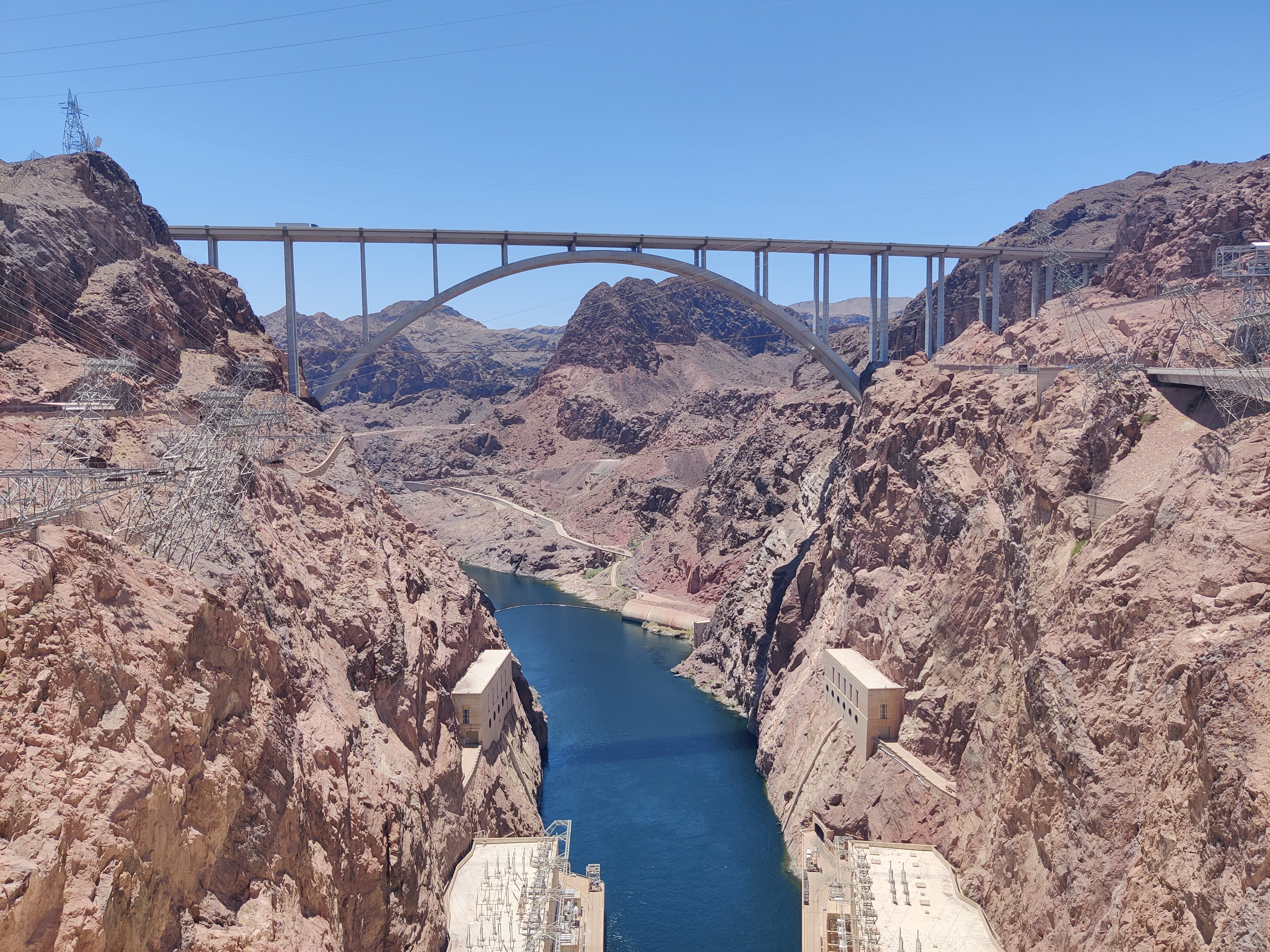 Hoover Dam is actually quite impressive. You can pay for tours of the dam, but we chose not to do them. Walking along the dam was enough for us. In addition to the dam, you can see a number of other structures such as Mike O’Callaghan–Pat Tillman Memorial Bridge, Monument Plaza, Winged Figures, four intake towers, and the powerhouses which generate hydroelectricity from the Colorado River. There are also restrooms and drinking fountains, which are a must when traveling with kids. The visitor center has information, food, and souvenirs. My photos (as well as my lack of information–sorry!) really don’t do the whole thing justice, so visit this link for more details about the dam’s history, usage, and tours: https://www.usbr.gov/lc/hooverdam/service/
