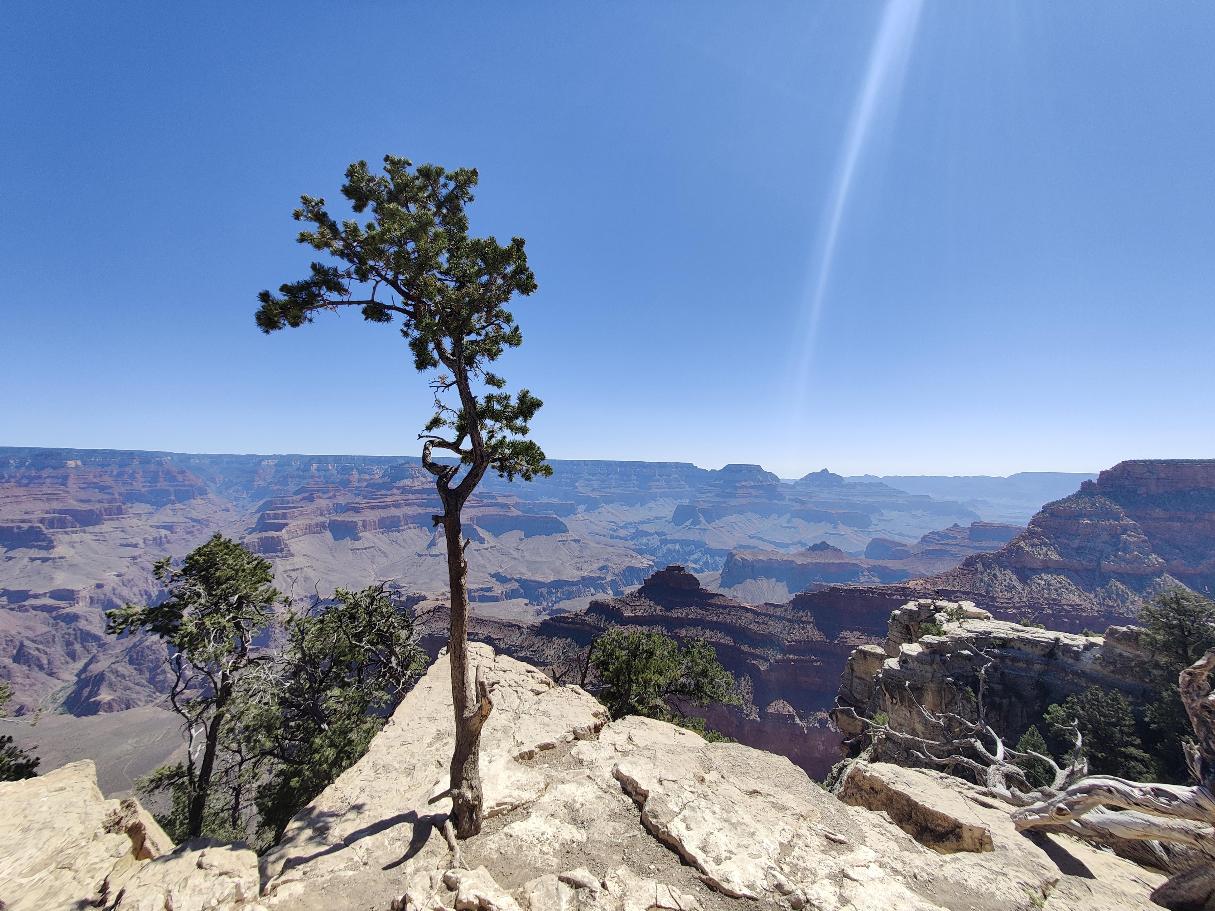 Some places along the trails of the south rim were practically empty, so you could stand in relative silence and solitude. That was quite nice! Warm, spirit-like breezes drifting up from the canyon, rustling through the few trees and shrubs there, gently fluttering my hair around, and providing an updraft for birds of prey on which to soar. Peaceful moments with God and nature and me.