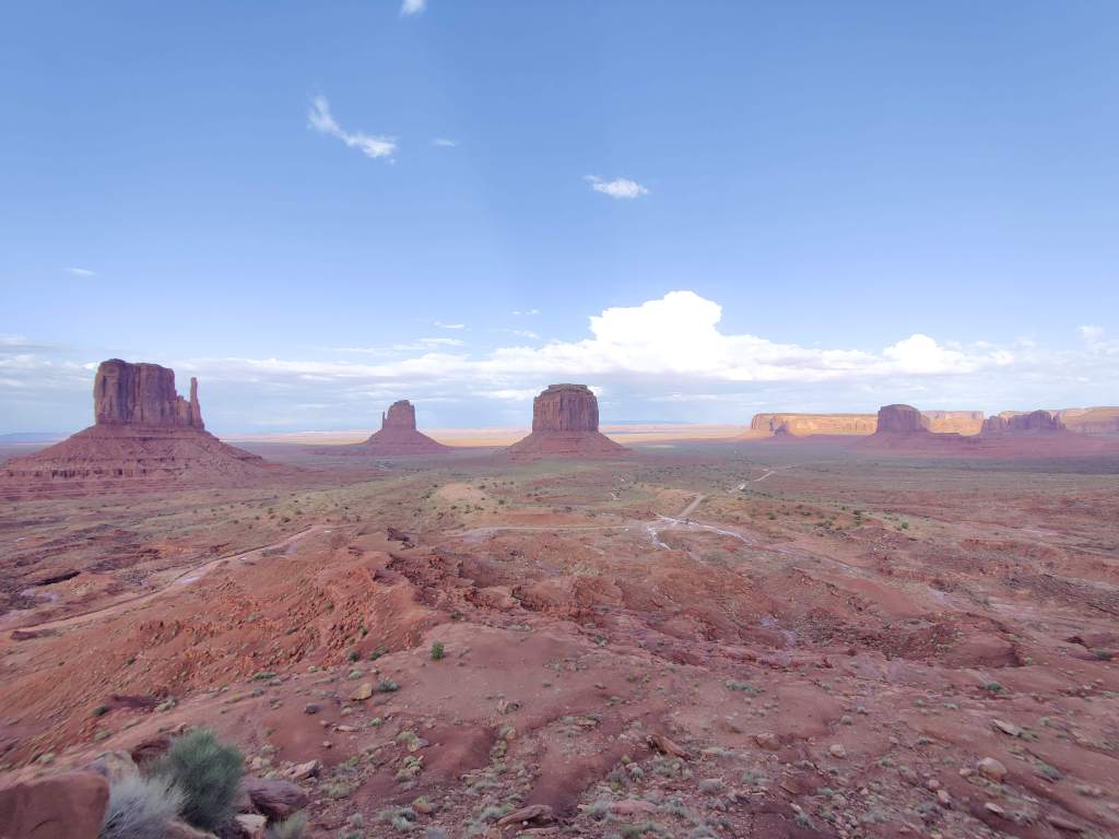 Located about three hours away from Flagstaff, Arizona, you’ll discover Monument Valley. It’s found in Navajo Nation, along the borders of both Arizona and Utah. During the late afternoon hours to nearing sunset, Monument Valley is absolutely majestic. Yes, majestic is the best word to describe the place. It helped that there had been a brief thunderstorm earlier in the day when we visited, refreshing some of the sparse greenery and saturating the soil to make the oranges, reds, and browns a bit more vivid. At the visitor center, we had such incredible views of the rock formations! Peaceful and ethereal Native American flute music playing over the speakers really added to the overall feelings of calm and wonder.